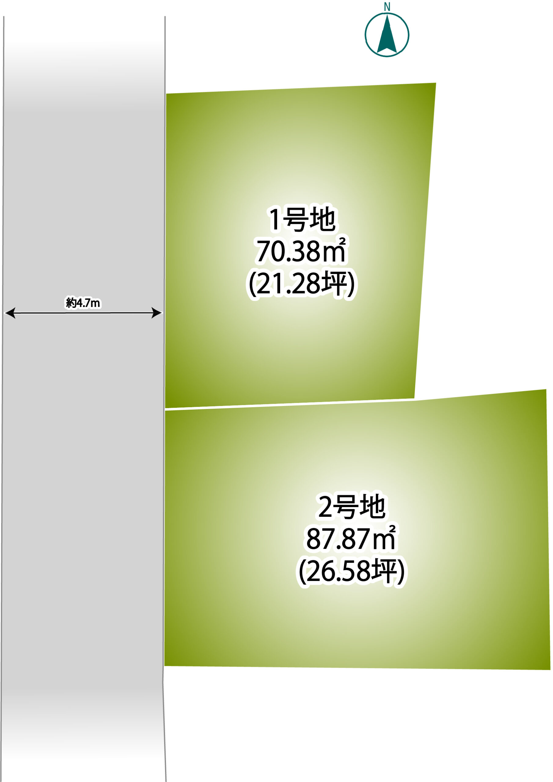 1号地:公道約4.7m 間口約9.2m 2号地:公道約4.7m 間口約7.5m |